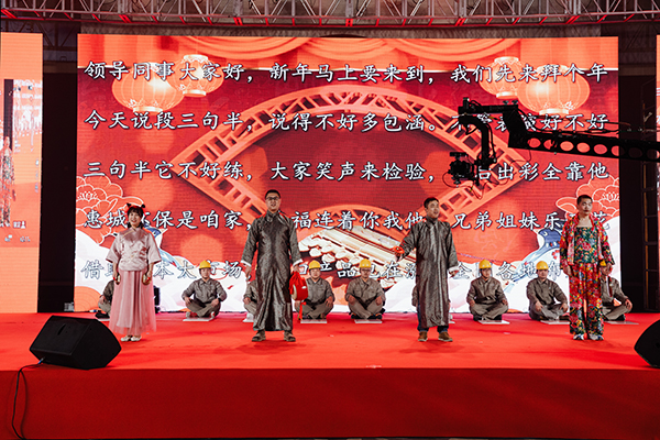 5點(diǎn)30分,文藝晚會(huì)正式開(kāi)始。創(chuàng)意節(jié)目精彩紛呈,全場(chǎng)氛圍熱烈火爆。生產(chǎn)管理部的三句半編排讓人倍感新鮮,情景劇“惠城奇幻夜”天馬行空,舞美效果將晚會(huì)推向高潮,小品“相親”表演讓人捧腹,戲曲與勵(lì)志歌曲串燒HIGH翻全場(chǎng)……