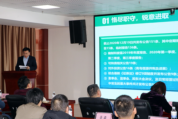 為全面、準確、客觀地評價公司中高層干部履職盡責情況,進一步加強公司人才梯隊建設,2020年12月26日-12月28日,公司中高層干部述職報告會在研發(fā)中心418會議室舉行。公司董事長張新功、總經(jīng)理李正及其他中高層管理干部、控股及參股公司委派的負責人參加了會議。