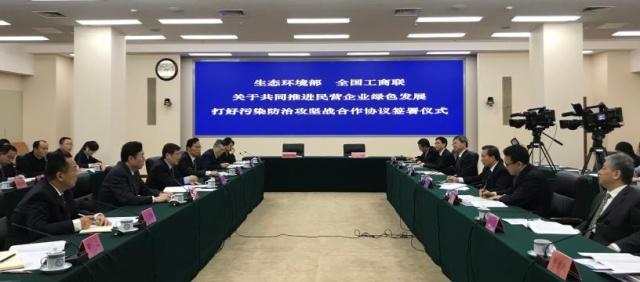 今天,生態(tài)環(huán)境部和全國工商聯(lián)簽署了“關(guān)于共同推進民營企業(yè)綠色發(fā)展 打好污染防治攻堅戰(zhàn)”的合作協(xié)議,聯(lián)合出臺《關(guān)于支持服務民營企業(yè)綠色發(fā)展的意見》,將通過健全市場準入機制、完善環(huán)境法規(guī)標準、規(guī)范環(huán)境執(zhí)法行為、強化科技支持服務、完善環(huán)境經(jīng)濟政策措施,支持民營企業(yè)提高綠色發(fā)展水平、營造公平競爭市場環(huán)境。